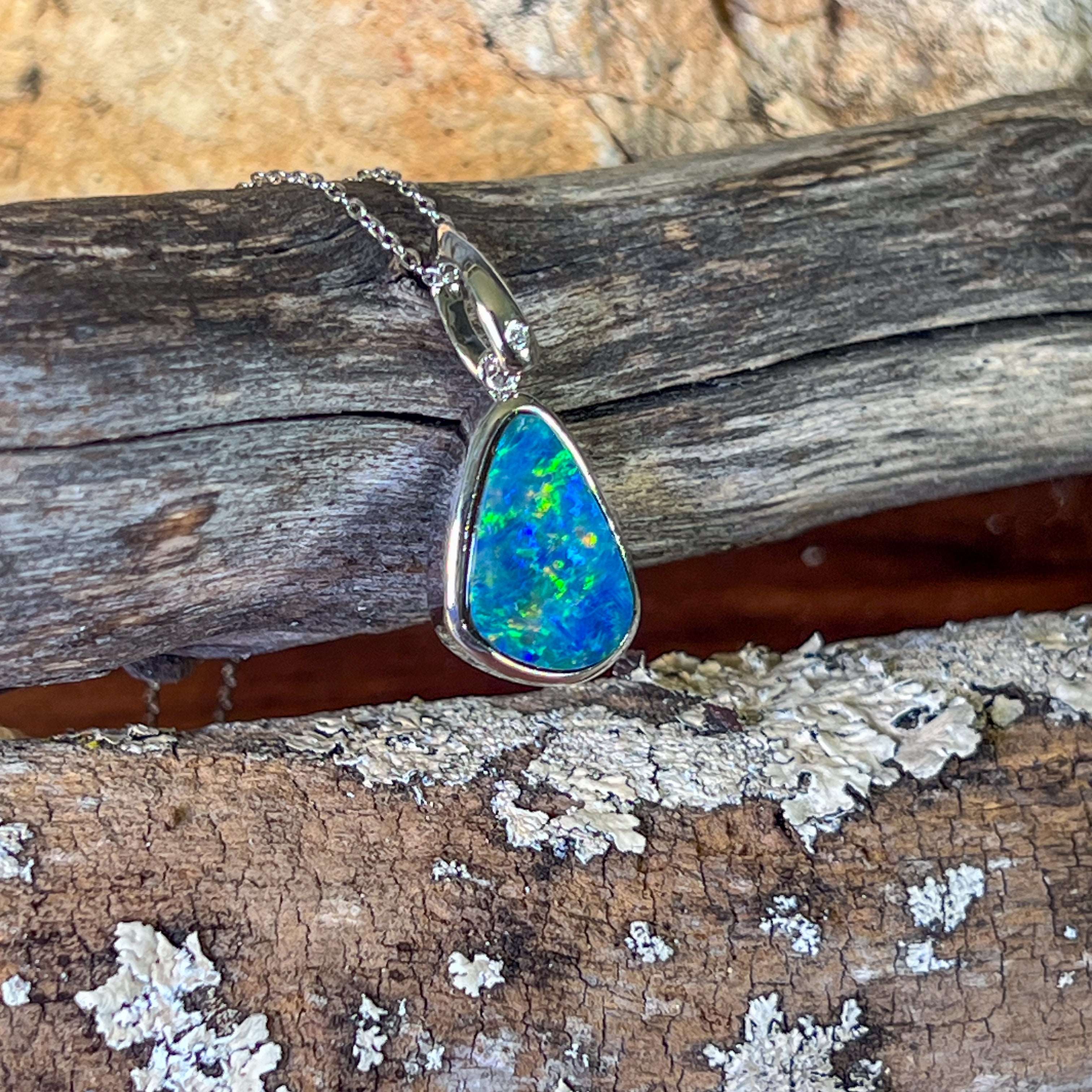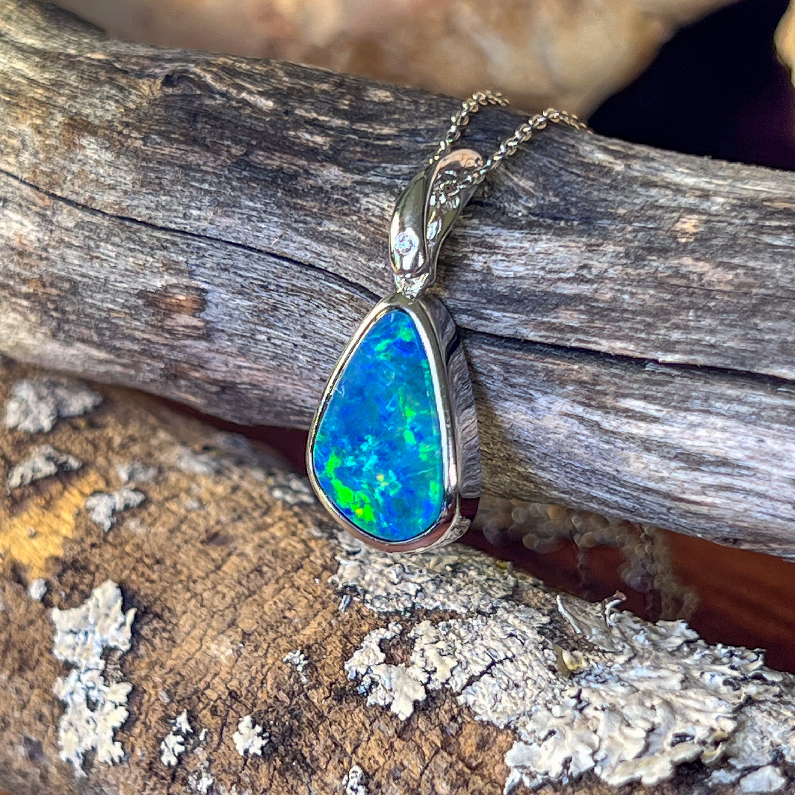 Indulge in the mesmerizing beauty of this Sterling Silver Triangle shape Opal doublet in Sea Blue Green! The unique triangle shape adds a modern touch to the classic opal stone, while the stunning blue and green hues evoke a sense of serenity and tranquility. Elevate any outfit with this versatile and eye-catching accessory.