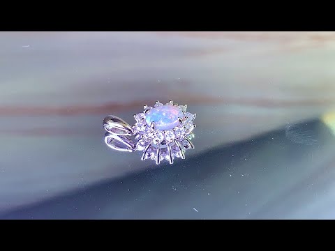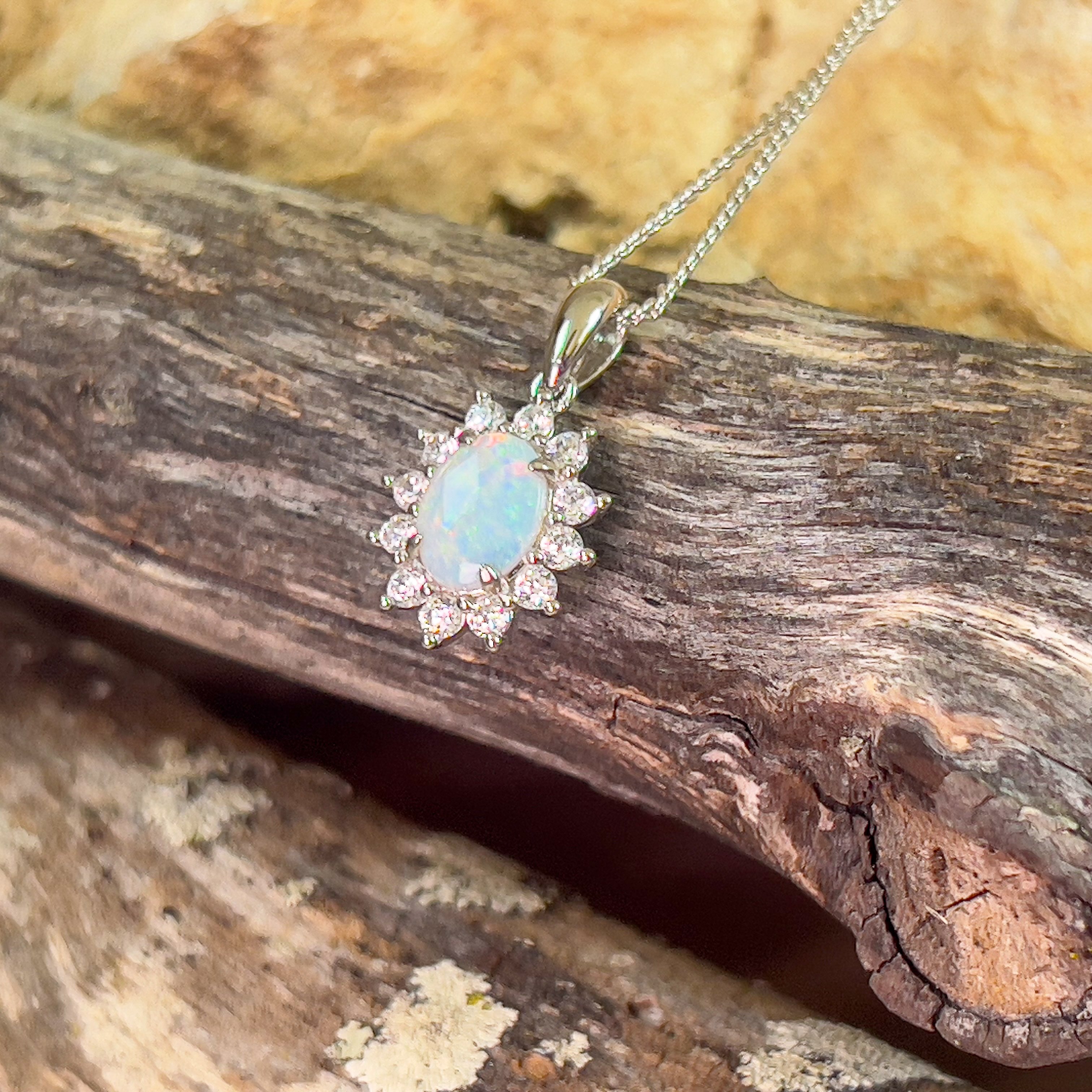 One Sterling Silver pendant set with one Australian Light Opal 8x6mm surrounded by cubic zirconia