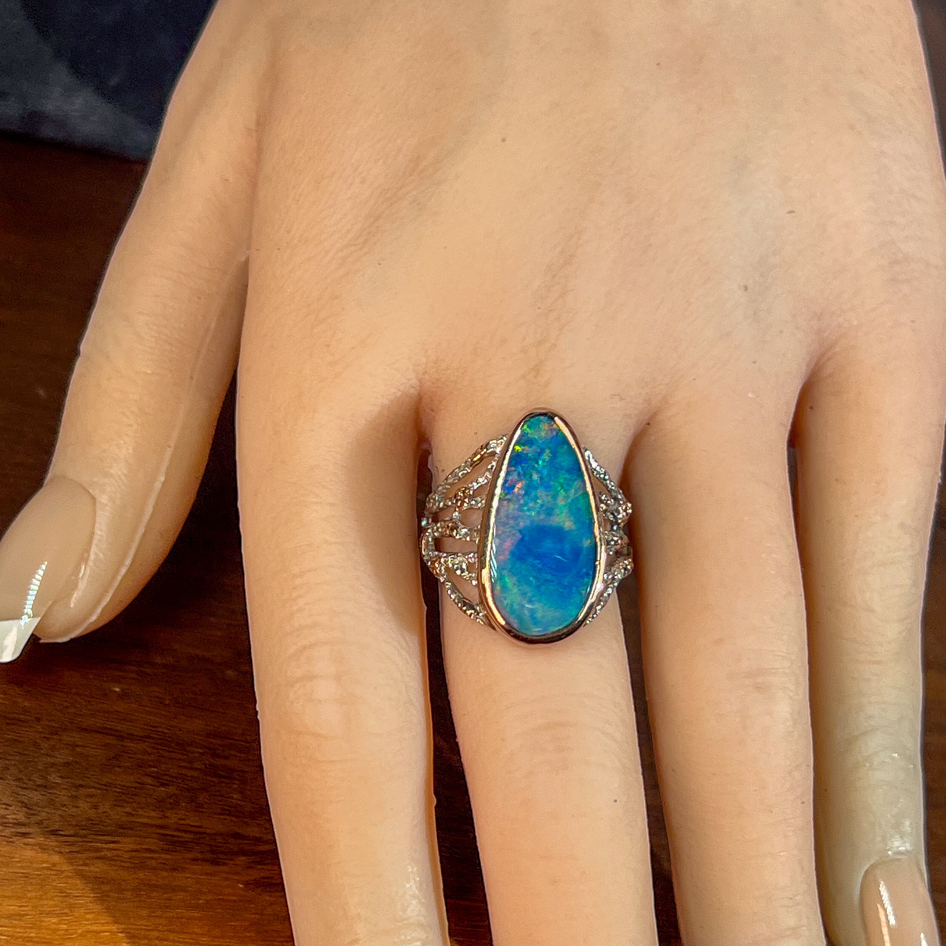 Sterling Silver Two Tone Rose reef design Opal doublet 5.63ct ring